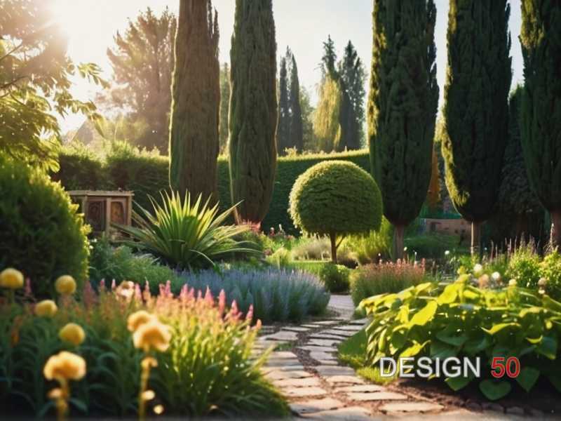 Для крупных клумб или осевых посадок применяют симметричную планировку по принципу зеркального отражения: растения одного вида располагаются по обе стороны от центральной оси. Это придаёт саду строгую геометрию и поддерживает визуальное равновесие. Контроль высоты проводят ежегодной обрезкой, чтобы сохранить изначальную форму и плотность кроны.